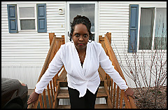 Steven R. Nickerson © The Rocky Sherri Wrightsil stands outside of her Aurora mobile home in March. Years ago, Wrightsil found solace in religion after a troubled past. She joined Mount Carmel Community Baptist Church and met the Rev. Harold Hicks. She says Hicks involved her in real estate scams and it's her duty as a Christian to reveal her part.